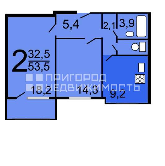• Площадь: 53,50/32/9